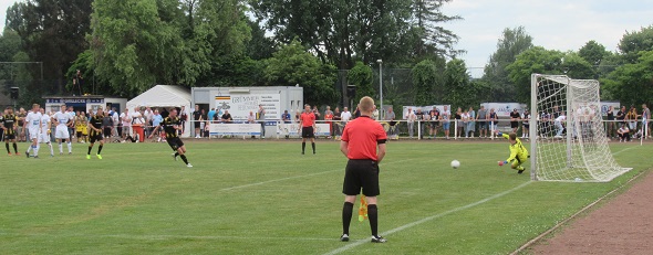 spitzem Winkel durch die Beine des Torwarts. Nach acht Wechseln zur Pause