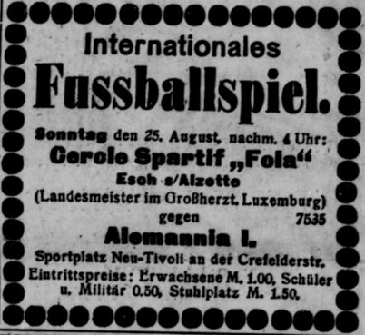 Hause gingen. Um 4 Uhr betritt die schmucke Luxemb.-Mannschaft in rot-weiß