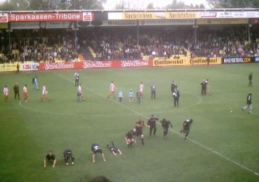 entsprechend leise wurde es im Gästeblock - auch der Umbro-Hampelmann auf