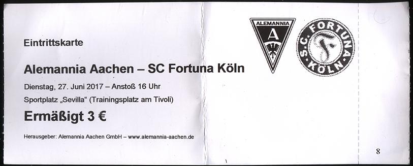 Zum zweiten Vorbereitungsspiel traf die Alemannia wie recht häufig in der letzten Zeit auf Fortuna Cöln - das ganze mit halbstündiger Verspätung nach einer Vollsperrung auf der A4. Die Alemannia hielt das Spiel gegen den klassenhöheren Gegner völlig offen. Theisen traf nach 40 Minuten den rechten Innenpfosten für die Gäste, kurz darauf traf Torunarigha nach Flanke von Mohr nur Pfosten, Außennetz, Torwart oder etwas ähnliches 100 Meter vom Betrachter Entferntes. Die eingewechselten Suzuki und Hammel sorgten im zweiten Durchgang für viel Unruhe im Cölner Strafraum, allerdings mit wenig Konsequenz im Abschluss. Poggenborg holte Suzukis Flachschuss aus der linken Ecke. So traf letztlich Theisen in der 82. Minute mit einem Schlenzer aus gut 20 Metern zum Tor des Tages unter die Latte. Das nächste Spiel findet am Samstag um 16 Uhr bei Concordia Oidtweiler statt.