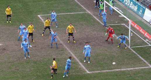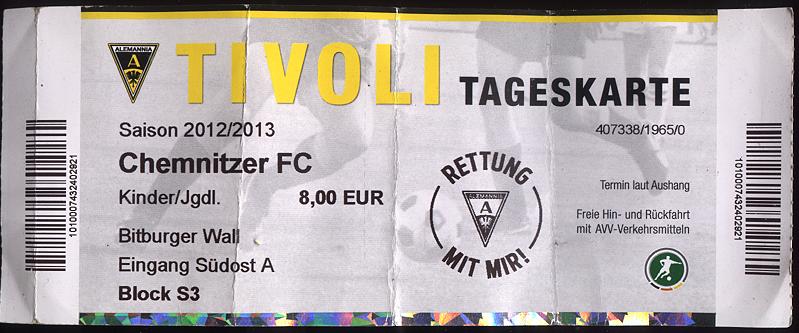 Am Ostersamstag kassierte die Alemannia gegen Chemnitz die fünfte Niederlage in Folge, und dieses Mal wurde es auch noch deutlich. Erb war in die Innenverteidigung zurückgekehrt, die Außenpositionen waren wie in Burghausen mit den Amateuren Strujic und Ajani besetzt. Letzterer hatte auf der rechten Abwehrseite größere Probleme, eine Flanke führte zum 0:1 durch eine Kopfballbogenlampe von Semmer. Auf der anderen Seite schoss Thiele nach Vorarbeit von Brauer aus fünf Metern völlig frei über das Tor - im Ansatz erkennbar und nach allen Fehlschüssen der letzten Wochen kaum noch überraschend. Die Gäste waren insgesamt die bessere Mannschaft und hätten noch vor der Pause erhöhen können. Das holten sie nach dem Wechsel nach, Erb fehlte in der Innenverteidigung, Herröder spekulierte auf Abseits, und Fink hatte von der Mittellinie aus freie Bahn dem 0:2 entgegen. Herröder gelang nach einem Eckball ein Abstaubertor zum 1:2, aber etwaige Hoffnungen währten nur fünf Minuten. Herröder und Flekken reihten sich mit einem katastrophalen Missverständnis in die Eigentorserie der letzten Wochen ein, Fink schob den Ball zum 1:3 ins leere Tor. Danach sehnte man nur noch den Abpfiff herbei, der leider auf sich warten ließ, so dass Förster und Makarenko mit zwei weiteren Toren die Schmerzen und die Demütigung vergrößerten. Durch das letzte Tor rutschte man auch noch auf den letzten Tabellenplatz ab. Ein Großteil der Zuschauer bekam das schon gar nicht mehr mit, an den Klassenerhalt glaubt nach so einem deutlichen Schuss vor den Bug kaum noch jemand. Ende Februar stand man noch mit 27 Punkten auf Platz 15, Ende März mit 25 Punkten auf Platz 20. Den Genickbruch gab es dabei mit der unnötigen Niederlage gegen Babelsberg.