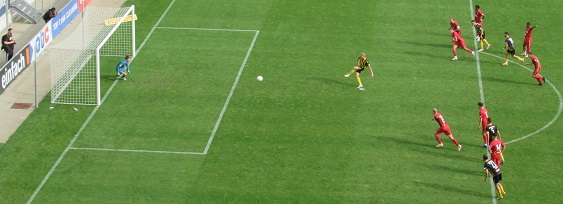 Nickisch holte einen Freistoß von Heinz aus dem rechten Winkel, und am