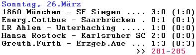| 31.03.2006 Update der Aufstiegsrechnung: Durch die Siege von Cottbus und Karlsruhe können wir frühestens am Donnerstag, den 13.4. aufsteigen
