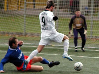 einschussbereite Andre Lehnen von hinten ins Tor geschubst wurde. Dann