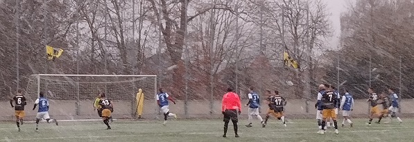 Zum Rückrundenauftakt traf Alemannia II auf den Drittletzten JSC Blau-Weiß II. Waren im Hinspiel noch 11 Tore gefallen, bekamen die 27 Zuschauer auf dem Parkdeck diesmal deutlich weniger zu sehen. Zum einen war das Spiel von Blau-Weiß I in der Kreisliga B ausgefallen, und die Gäste konnten ihre Defensive entsprechend verstärken. Zum anderen machte es die Alemannia einfach nicht gut. Cenollari hatte nach 27 Minuten die beste Chance des Spiels und scheiterte nach bereits umständlicher Ballmitnahme freistehend am Torwart. Weidner hielt auf der Gegenseite einen Freistoß-Aufsetzer von Omerovic. Zur Pause tauschte Weitz mit Wolff, und der zuletzt angeschlagene Schneiders kam ins Spiel, aber auch das half nicht. Weitz schoss nach einem Einwurf am langen Eck vorbei, während auf der anderen Seite Weidner gegen Bouhssine hielt, Ünal einen Kopfball verpasste und Geffken links vorbei schoss. Am Ende leuchtete vor Ausführung eines Eckballs noch die Rote Karte durch den einsetzenden Schneefall für den Gästetorwart, wahrscheinlich wegen einer unfreundlichen Geste dem Schiedsrichter gegenüber. Es blieb beim leistungsgerechten 0:0, durch das die Alemannia vier Punkte hinter Tabellenführer Verlautenheide III und drei Punkte plus ein Spiel hinter die Westwacht zurückfällt. Das letzte Spiel in diesem Jahr gibt es kommenden Sonntag bei Borussia Brand II.