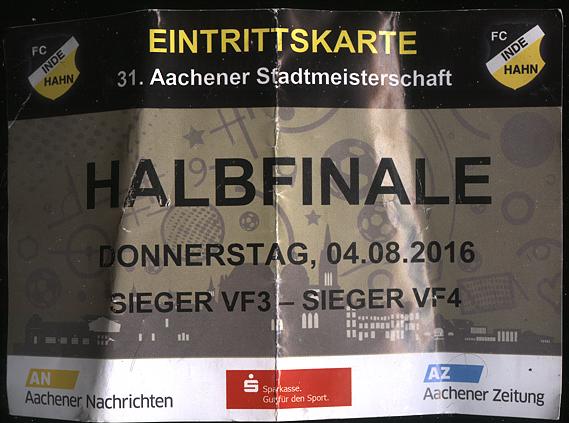 Im Halbfinale der Stadtmeisterschaft gewann die Alemannia mit 4:1 gegen Bezirksligaaufsteiger RaSpo Brand. Amghar traf nach Querpass von Arslan zur Führung und bereitete das 2:0 durch Kopfball von Kapinga vor. Vonderbank traf zum 2:1 ins eigene Tor, nach dem Wechsel erhöhte Kapinga auf 3:1. Als der Brander Torwart gerade den schönen Sonnenuntergang genoss, hob Vrzogic den Ball aus über 40 Metern zum 4:1-Endstand ins Netz.