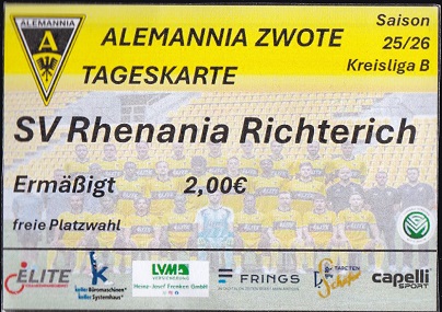 Im sechsten Saisonspiel traf Alemannia II auf den Tabellenletzten Richterich II, der 1 Punkt und 2:23 Tore auf dem Konto hatte. Auch wenn sich die Gäste tapfer wehrten, bot sich unserer Mannschaft das bisher leichteste und entspannteste Spiel. Torwart Beckers konnte nach sechs Minuten einen Schuss von Thome nicht festhalten, und Fofana setzte zum 1:0 nach. Weißkirchen erhöhte nach Anspiel von Witt auf 2:0. Lauffenberg traf im Anschluss an einen Freistoß von Thome per Hacke zum 3:0. Nach der Pause landete ein abgefälschter Schuss von Taher zum 4:0 im Netz. Fofana traf nach Vorarbeit von Wefers und Taher abseitsverdächtig zum 5:0. In den letzten beiden Minuten erhöhten schließlich Sarfowaa nach Doppelpass mit Taher und noch einmal Taher auf 7:0. Für Alemannia II war es der sechste Sieg im sechsten Spiel.