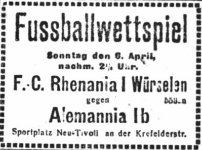 * Wahrscheinlich war Alemannia Ib identisch mit Alemannia II, und es handelte sich beim angekündigten Wettspiel um das ausstehende Meisterschaftsspiel.