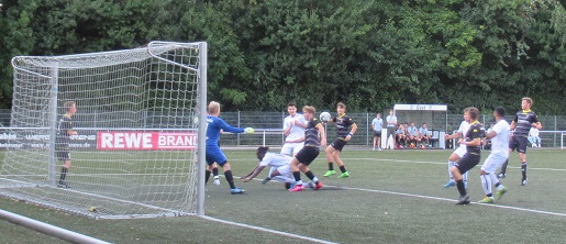 Alemannia II bestritt am Samstagnachmittag ein Testspiel bei der ersten Mannschaft von Germania Freund (Kreisliga B). Die hatten zur Saisoneröffnung immerhin einen Imbisswagen von "Fritten Willi" aufgefahren. Nach zehn Minuten führten die Gastgeber mit 2:0 und fast auch mit 3:0, und man erwartete bereits ein ähnliches Ergebnis wie beim 2:7 bei Westwacht II. Die Alemannia fand jedoch besser ins Spiel, kam durch Zimmermann zum Anschlusstor und durch einen sehenswerten Treffer von Bokelo zum verdienten Ausgleich. Von den Spielen, die ich gesehen habe, war dies das mit Abstand beste von Alemannia II.