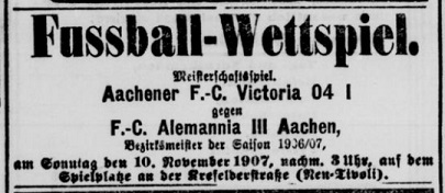 So, 10.11.07, 15 Uhr, Sportplatz Tivoli: