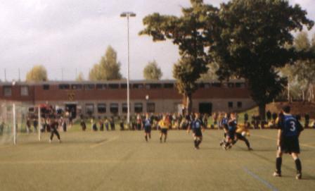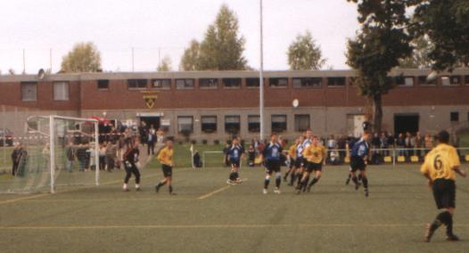 mit dem Gegner. Nach Flanke von Matthias Hacker behinderten sich Daniel