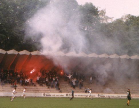 mitgereist, darunter knapp 20 Pyromanen, die sich auf der Gegengerade