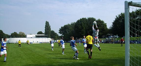 Glück, dass Andreas Altenback mit einem Kopfball nur die Unterkante der