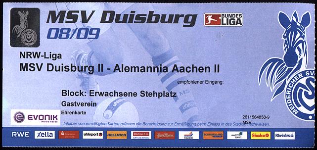 Obermeiderich über den Parkplatz, beklebte den Aachener Mannschaftsbus mit