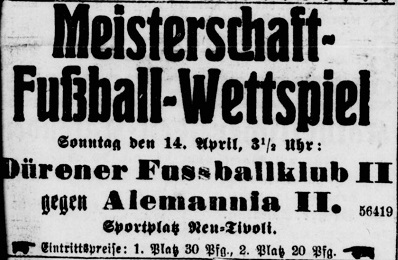 * Beide Mannschaften setzten nicht spielberechtigte Spieler ein; bei der Alemannia waren es Walchenbach und Löhr. Das Spiel wurde für beide Mannschaften verloren gewertet.