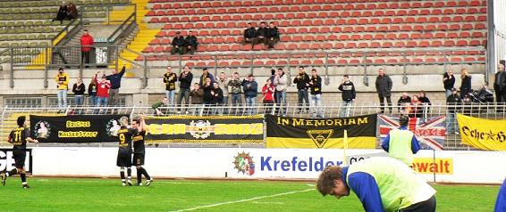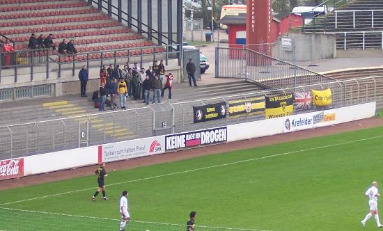 die Uerdinger Fans schon mit "Aachen halt's Maul"-Gesängen am