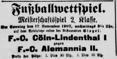 * zunächst für den 10.11. angesetzt und von Lindenthal kurzfristig abgesagt