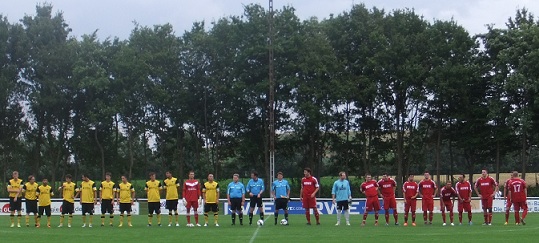 Am Mittwochabend bestritt Alemannia II das erste Vorbereitungsspiel. Gegner auf der Anlage von Rhenania Lohn war eine Turnierauswahl des Blausteinseecups mit Spielern von Rhenania Lohn, VfL Übach-Boscheln, VfR Übach-Palenberg, Sportfreunde Hehlrath, Alemannia Bourheim, FV Eschweiler, Fortuna Weisweiler, Jugendsport Wenau, Alemannia Mariadorf, Rhenania Eschweiler und SC Kellersberg. Im Kader des neuen Trainers Peter Schubert (VfB Lübeck) sind mit Torwart Kevin Rauhut, Marc Beckert, Dennis Bündgens, Christophe de Sousa, Daniel Hofmann, Dennis Lang, Ali Mostowfi, Maxim Philippe, Sasa Strujic und dem verletzten Robert Wilschrey zehn Spieler aus der Vorsaison. Dazu kommen Marvin Ajani, Jan-Frederik Göhsl, Tim Lünenbach und Tim Wilden aus der eigenen U19 sowie die externen Neuzugänge Raphael de Sousa (FC Metz U19), Rafael Garcia (Germania Dürwiß), Gerrit Hermsen (VfL Alfter) und Sven Schaffrath (VfB Lübeck; gleichzeitig Co-Trainer). Zwei Tage nach dem Trainingsauftakt lief noch nicht alles rund. Neuzugang Hermes traf fünf Minuten nach der Pause zum einzigen Tor des Tages.
