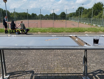 liegenden Vereinsheim kann man das Spiel unter anderem von einem Stehtisch aus