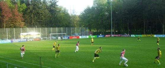 Alemannia II bestritt am Dienstag ein Testspiel bei der Zweitvertretung des PSV Eindhoven. Der verfügt einige Kilometer vom Stadion entfernt über ein schönes Gelände mit acht Plätzen, davon einer mit Tribüne und grßer Cafeteria. Die mit den A-Jugendlichen Redzepagic, Uludag und Muhovic angetretene Alemannia ging durch Abdul Özgen nach Vorarbeit von Uludag und Popova in Führung. Ansonsten verbrachte Ex-Roda-Keeper Bas Roorda einen eher ruhigen Nachmittag. Den zweiten Durchgang dominierten die Gastgeber vor allem nach Einwechslung des quirlingen Hasselbaink, der an beiden Treffern beteiligt war. Am Samstag um 15 Uhr trifft Alemannia II in der Meisterschaft auf die SSVg. Velbert.