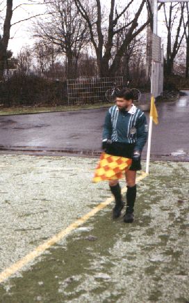 Torwart gegen den rechten Torpfosten. Beim Anspiel war die Fahne des
