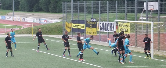 Alemannia. Vier Minuten später traf Dennis Lang aus 20 Metern zum 0:1 ins