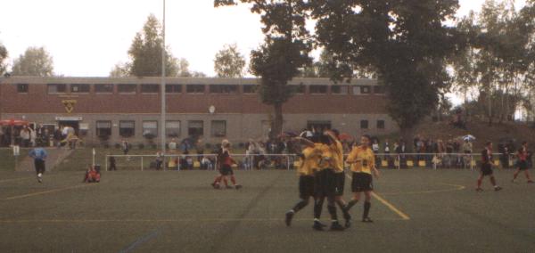 halblinks alleine aufs Tor zulief. In der Mitte war Frederic Donkor