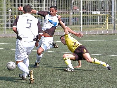 Serkan Durmaz im Zweikampf mit Mario Mutsch eher über Ball und eigene