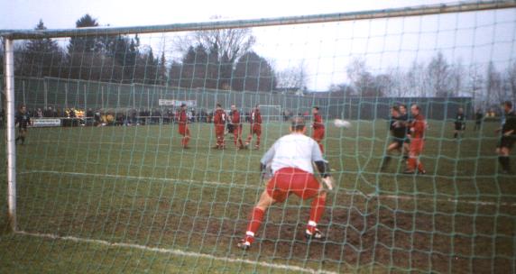herauseilenden Dirk Memmersheim hinweg zum Ausgleich ins Tor. Zum siebten Mal