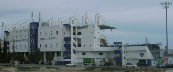Das Stadion von Champions-League-Teilnehmer Anorthosis Famagusta in Larnaka. Der Verein musste 1974 seine türkisch besetzte Heimat Famagusta verlassen und fand hier ab 1981 dauerhaftes Asyl.