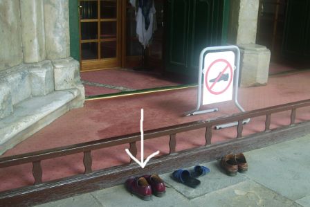 Die Schuhe der gläubigen Moslems am Eingang.