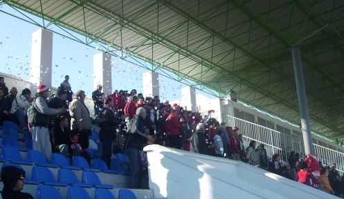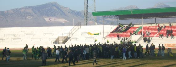 Die Haupttribüne teilten sich die Fans des Gastgebers Gönyeli und des Gastes Magusa (Famagusta) Türk Gücü.