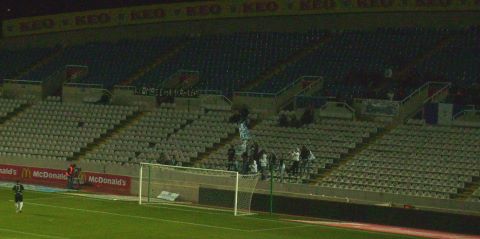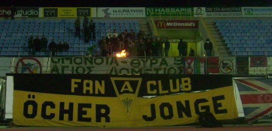 Linke, "St.Pauli" rufende Ultras von Omonia beim 0:8 ihrer Mannschaft gegen die Alemannia - Spielbericht und weitere Fotos.