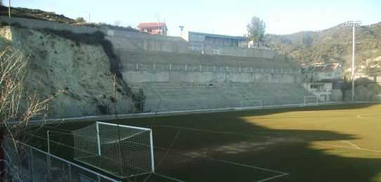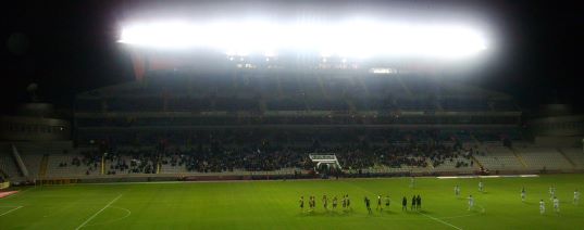 Das Nationalstadion Zyperns im Südteil von Nikosia mit irritierender Beleuchtung. Das Stadion wird von den rivalisierenden Spitzenteams Omonia und APOEL sowie vom Zweitligisten Olympiakos genutzt. Neben Länderspielen wurden hier auch die Heimspiele von Anorthosis Famagusta in der Champions League ausgetragen.