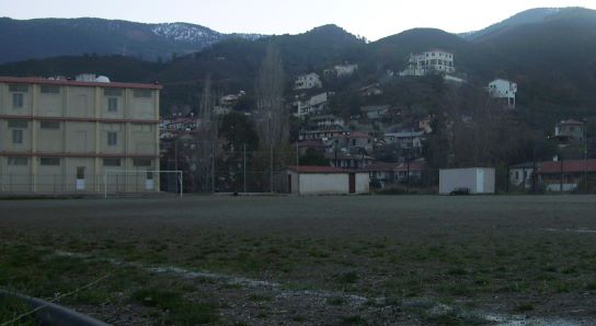 Zum stillen Gedenken an die Temperaturen in der Heimat lag in den Bergen hinter diesem Sportplatz Schnee... in der Nähe lag auch Zyperns einziges Skigebiet.