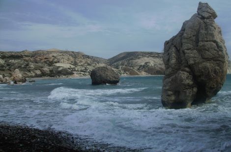 Lustige Geschichten aus der Antike: Kronos schnitt Uranos Eier und Pimmel ab und warf sie ins Meer, welches aufschäumte und daraus die Liebesgöttin Aphrodite gebar. Davon inspiriert fotografieren jährlich tausende Touristen diesen gewöhnlichen Felsen.
