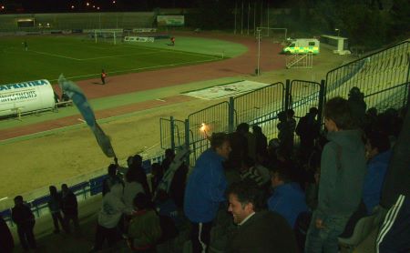 Fans von AEL Limassol beim Pokalspiel in Pafos. Das Stadion war beinahe eine 1:1-Kopie des Zenon-Stadions von Larnaka.