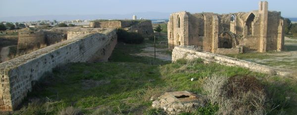 Famagusta an der türkisch-zyprischen Ostküste. Die gut erhaltene Stadtmauer umschließt die Altstadt mit ihren verfallenden christlichen Kirchen.