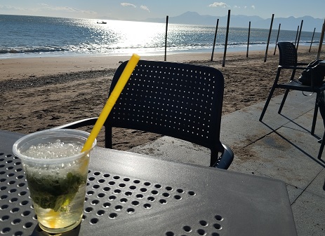 Überzuckerter Cocktail-Ersatz an Plastik. Aber Sonne.